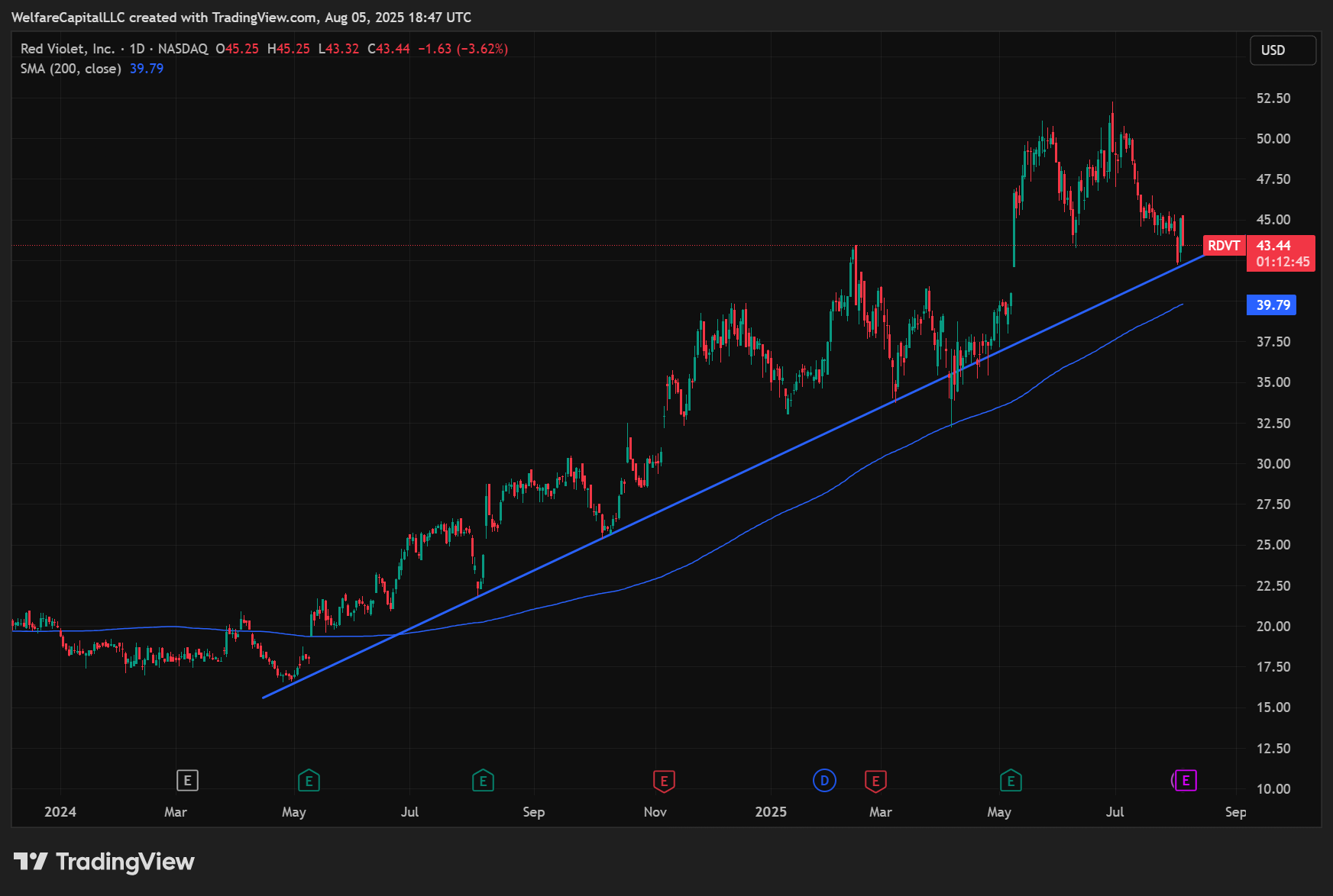 Also, I’d like to mention here that this trade is a little more immediately actionable than my usual writeup. RDVT reports earnings tomorrow after hours, and I have a strong feeling that they will beat numbers. The stock has come down a good bit from its last earnings pop and it’s sitting right on a long-term support trendline, just above the 200 day moving average. This technical support factor along with an earnings beat and potential for data asset contract resolution (mentioned below) could cause shares to see a decent pop if they do beat estimates.